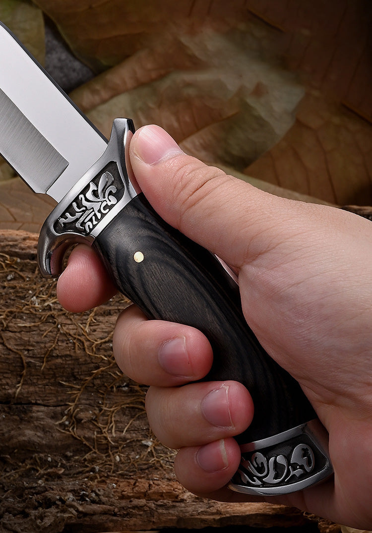 ✨Coltello con impugnatura goffrata ad alta durezza + fodero in pelle di alta qualità✨
